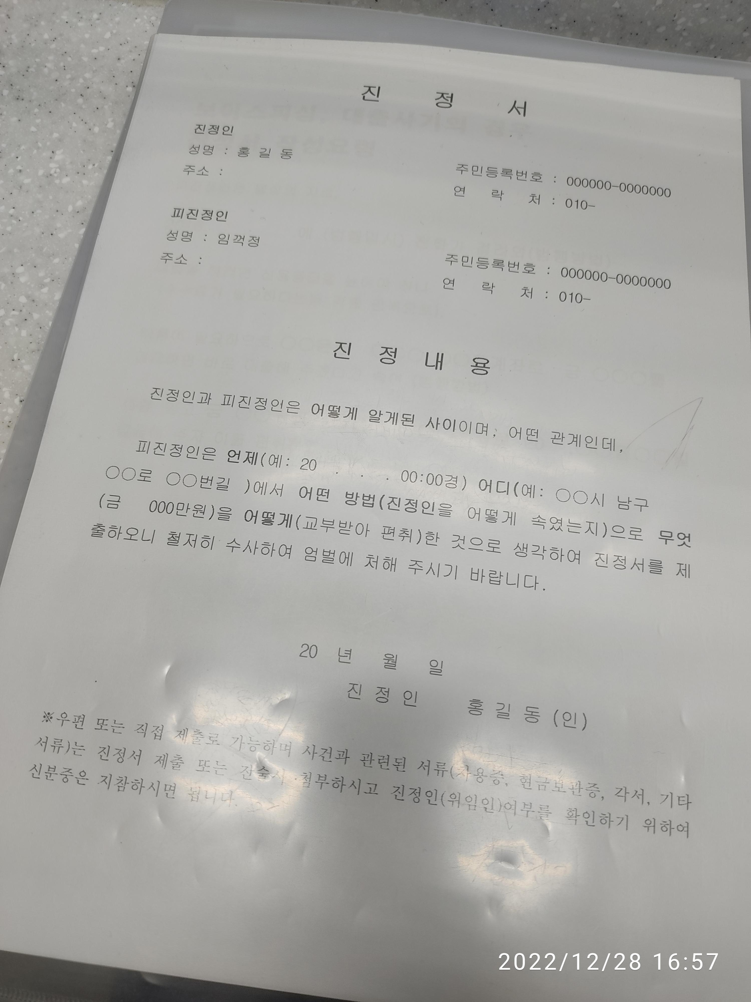 + 인터넷으로 진정서 양식 받아서.