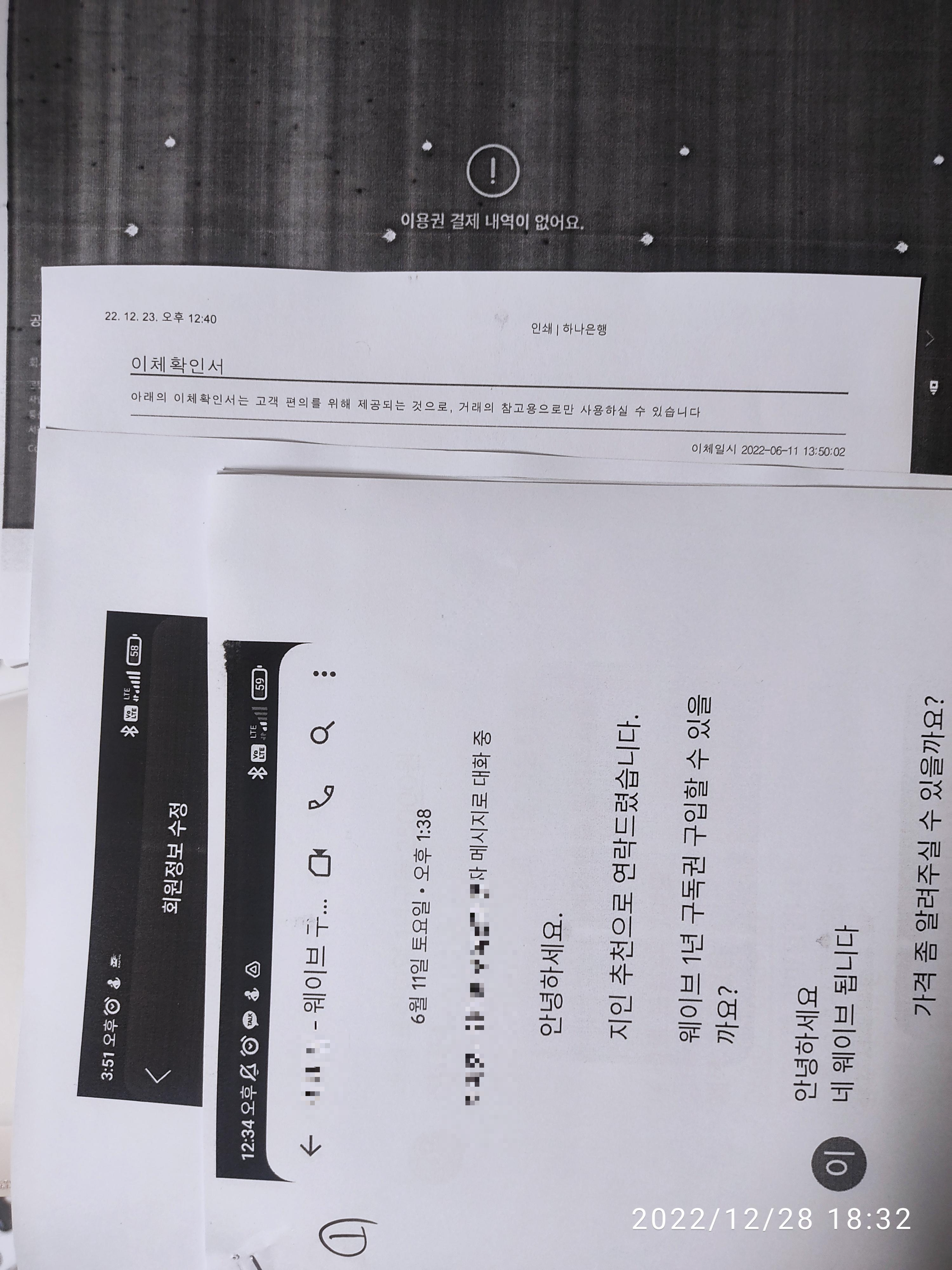 지인 소개로 알게된 OTT구독권 판매자에게 1년치 웨이브 이용권을 샀는데